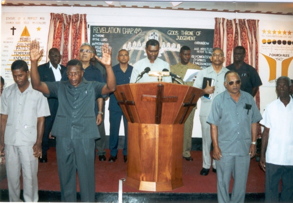 Don't you think that Brother Paul would have straightened that in 1 Corinthians 7, when he said, he wished that they were single, don't you think that he would have put a clause there? (He never played with words) He would have put a clause there and say, "If you remain single, you cannot preach the Gospel". But he never did. He said that a man that is unmarried do better because he attend to the things of the Lord. But, he that is married careth for the things of his wife. Yes! You make a better preacher if you have that gift not to be married. When you leave home, you don't care to come back. You are about your Father's business. Paul went out; he preached for six years and then came back. He served the Lord better. He reached in a certain place; the Lord told him, "I have much people in this city; stay here". He stayed there a year and a half and pastored. You serve the Lord better. Now, the Lord giving a wife to a man is a great favor and asset. He cuts his ministry to suit that gift. Now, the mighty Elijah today, William Branham, he had a wife and he preached the Gospel. Now, I will have you to know that Brother Branham was also preaching before he was married. Brother Branham was our example in our age and he was a Gospel minister before he was married, and he never gave no such commandment concerning a minister. But Brother Branham said something about a deacon. Now, in my understanding, when the Bible said that a man must be the husband of one wife, I simply believe that the man could not be a polygamist, because there were those under the Jewish religion who had two, three and a thousand wives, and when one came to the Gospel, and he was a polygamist, he could not be a bishop, because he would not represent the true Gospel which commands one wife and one man, therefore he would be a poor example. So the man, in my understanding, could not be a polygamist. There are other questions on polygamy which I had to answer for these brethren in Africa. They like a lot of wives. And we have a hang over right here in the Caribbean. They also like a lot of wives. So they write and ask, "Brother, what do the polygamist do with these wives? He came to the message; the message is against polygamy; There are laws in many countries, you could marry how many wives you want, but the day you cannot mind them, run for your life. They will put you in jail. And contrary as this may sound, I said, "If you came to the Gospel as a polygamist, let every man abide in his same calling wherewith he was called.(1 Corinthians 7). Keep your wives, but don't marry another one. Together with that, you cannot preach, because the Bible said, you must have one wife, not a dozen. So we still have the same problem today. Man is the same kind of man. And whether there is a law in the land or not, we have plenty polygamist in this country. We call them adulterers. It's just the law that is keeping them down from having a dozen wives. Do you notice something that out of these hundreds of questions there is no opposition? These are not opposing questions. These are questions that are coming from humble hearts, sincere hearts; our associates around the world. Men who were fooled by the Western people. These people want to come out of their deception. There is not one opposing question in all these hundreds of question that we are answering. Everybody wants to know what is right or wrong. A hundred questions came from India alone. These tapes have to go; I spend much time in writing these exposition books. Then we have to pay thousands of dollars when we send them into the printery. After that, we have to pay three times the amount to post one book to certain countries. But it's blessing people. If it is blessing people, why stop? It is sowing a seed. It's laying a foundation for another outpouring of the Holy Spirit, that people will be trained up, people will be ready, people will be clean, people will be established in the doctrines of Brother Branham, in the plain message. When that outpouring comes their hearts will be clear, clean and ready. The church set in order. It's the doing of the Lord. TopQuestion#134: "Do pastors require ordination by laying on of hands? Please explain ordination of pastors in the message churches?" Answer:Ordination is scriptural. Jesus ordained twelve apostles and he ordained seventy. (Matthew 10, Luke 10). Titus was left in Crete that he may appoint elders in every city. That he may ordain them even as Brother Paul appointed him. He was to follow the same pattern. So, we read there that it was to be done by the laying on of hands of the Presbytery. Presbytery is another word for elder. The Presbyterian church took that word and called themselves the "Presbyterian organization", there was a certain way to ordain these men. Now, whether this is compulsory, is the question. Although it is scriptural, is it compulsory? That's the question. "Is ordination by the laying on of hands compulsory?" I want to let you know that no man laid their hands on me yet. Don't you think I am doing well? [Congregation says, "Amen!"] So, there is a middle line there then? Now, who laid hands on Jesus and ordained him? I am seeing something in the Scripture, that there were men who had hands laid upon them, and men who had no hands laid upon them. Now, when God called Brother Paul in the ninth chapter of Acts, did you read anywhere in the Scripture that the Lord sent him down to a certain man that he might lay hands upon him and ordain him? No, He sent him to a man that he might pray for him and baptize him. In the same ministry of Brother Paul, after a long time at Antioch, after Brother Paul was preaching the Gospel everywhere, they were assembled together and there were prophecies in the church (nine divers gifts operating in the church; fasting and prayer was going on, five fold ministry in almost every local body), and somebody arose and prophesied (that is the thing we want to see). Maybe a little sister ju