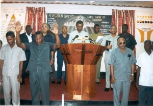 So now, we can see a display of sanctioning the command of the Lord at Antioch. Because they believed that was the Spirit, they called Brother Paul and Barnabas and said, "Yes my beloved brethren, we recognize that the Lord has called you to send you ought to a great work." I will tell you something; Paul was not ignorant of that. The Lord had already spoken to him on the road to Damascus, telling him where He is going to send him and how he will make him a light to the Gentiles. Yes! So now this was a sanction. The ministers that were gathered there, the spiritual men, they were gathered there to say "Yes, we believe that, we accept that." That was not ordaining Paul or Barnabas. That was sanctioning the call to the field, and they laid their hands upon them and they prayed for them. They said, "Lord, prosper these brothers' ministry. We recognize that this is a move of the Lord." And they sent them out there, and they went out there for years, and they won millions of souls in a given time, to the Lord. So it was not an ordination but a sanction. Now when Brother Paul told Timothy to lay hands upon the elders and ordain the elders in every city, these men were already preaching. They were already functioning. These men had received the Holy Ghost. These men received the Token; it had fallen at Pentecost. These men were living the lives; they were preaching. But then, Brother Paul told Timothy to tie down the thing. Let the whole congregation see that I Paul told you, the overseer in Crete, to sanction these men's gifts. It's more a sanction, instead of imparting a gift. That is what an ordination is. Brother Titus, the overseer in that age, that time, and in that region he had many churches under his care, and he went there and called the elders, he said, "Brethren you had been preaching for the past couple years here, but I want you the congregation to understand that I sanctioned that, and Brother Paul, my pastor, he sanctioned the same. I have his letter right here written to me; I am going to read his letter right out to you to let you know that this is the doing of Brother Paul, and I have come to lay hands upon you, together with these other men, called the Presbytery, we will lay hands upon you and we will identify ourselves with you." That is ordination. But I will have to read another scripture and you heard it before. This is where the ordination took place. The ordination never took place when Brother Titus laid his hands upon them. He sanctioned the ordination.