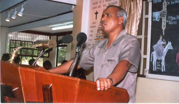 So more than likely, when a fellow just got baptized, and comes up to this place and he has a desire to preach immediately, there is some selfish motive involved. There is a great danger whenever a man comes from organization, denomination, the world, a Hindu religion, Muslim religion, or comes from an African religion and he gets baptized. This baptism dose not take away all those seeds of discrepancy from the man's soul. He needs to sit down until every seed of discrepancy is taken away from his heart. And that is where the people made the biggest mistake in this message. They came straight from organizations, with those organizational seeds, took the message, started preaching and hybrid the message with their denominational seeds. Right now we have hybrid Baptists under the message, hybrid Presbyterian, hybrid Catholics, and you could very well hybrid the Hindu religion into this message because you never laid on the altar until all those seeds of idolatry leave your heart, and that is what happened to that great man called Paulaseer Lawrie. That is why he made himself the tenth incarnation of the Hindu god called Krishna. You've got to pluck up those seeds. When a man comes to this message from organization and from the world, he should go under a purging, listen attentively, pray, repent, sit and hear the Word of God that you could understand right, and give up those old conceptions, those old thoughts, those old seeds, and if you don't give them up, when you hear the message, what will happen is that you will hybrid it, and you will actually think that you are preaching the message, but you have a hybrid message and if you have a hybrid message you will produce hybrid and perverted members, then an evil spirit will follow you. So there are many in India and in Africa who are very ambitious to preach and many times it is motivated by poverty, where they get little congregations together and they recently come out from their old religion of idolatry, both Africa and India, idol worshipers, and then they bring over those seeds, have the same spirit from their religion, hybrid the seeds with the message and then they make something like the message, and then they would produce members like that. The greatest thing you could do when you come to this message is to sit down and learn at the feet of Jesus Christ; find somebody who could teach you the Word of God. So under this condition here, you are yet a novice, one young in Christian faith, you've just come from the water, just came from the organization and from the world, and you cannot use the pulpit. Your motives and objectives must be discerned by the leaders. You could say what supernatural vindication that you have, I am looking at your motives and objectives; that is where we ought to look. Top